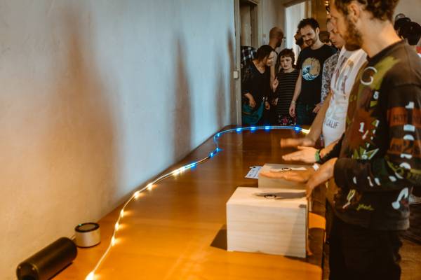 Beat Lines is a 1-dimensional 2-player custom hardware rhythm game running on a 5 meter long LED strip, two wooden boxes (equipped with piezo sensors), a couple arduinos and a computer for the beat analysis.