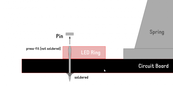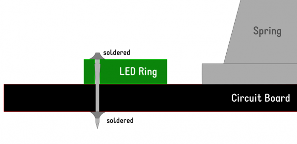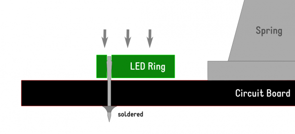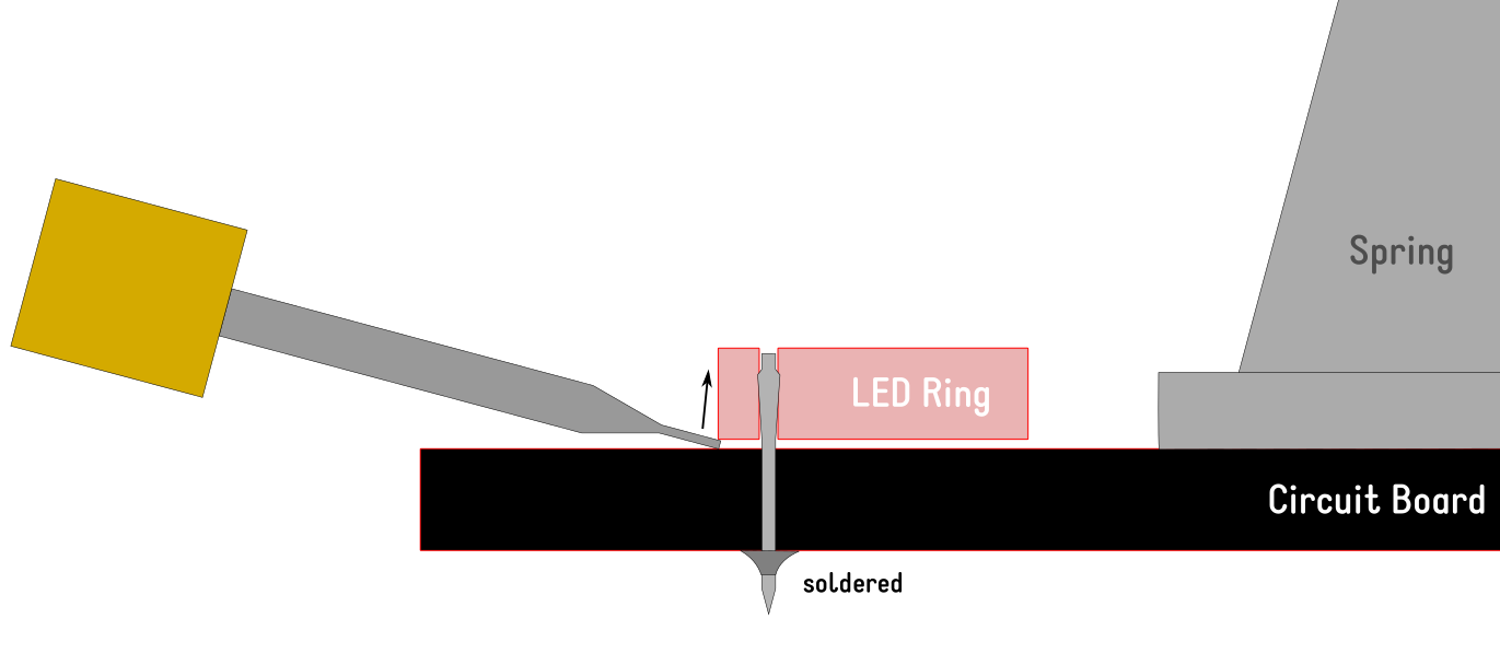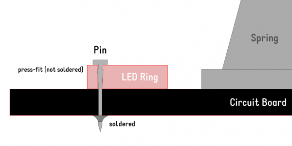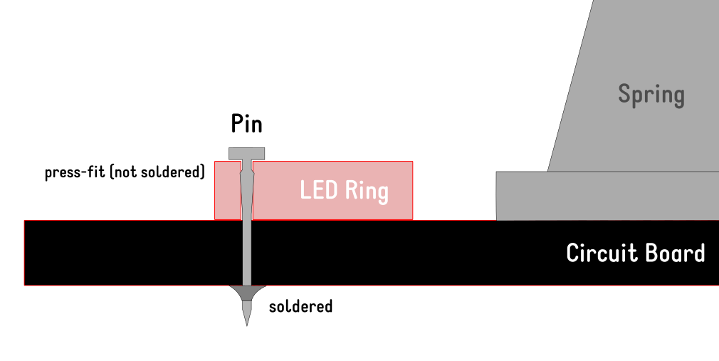 These pins are press-fit on the side where they're holding the LED ring, and soldered on the other side to the PCB:
