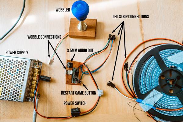 Line Wobbler has 10 levels that increase in difficulty and can be completed in 10-20 minutes, culminating at a boss fight. In the game, the player is represented by a green dot that has to reach the other end of the strip where a colorful portal marks the exit. The player is moved by bending the spring in the corresponding direction. There are several obstacles: